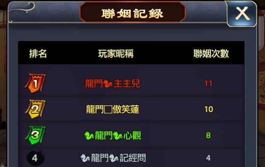 「聯姻紀錄」這邊能看到你跟其他玩家已聯姻幾次,滿5次就可以成為「親家」。