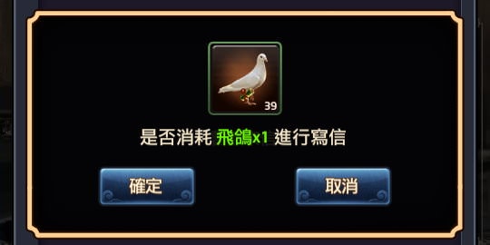 親家的「書信」系統是這遊戲目前唯一的私訊功能,每次傳遞訊息需消耗1個「飛鴿」。