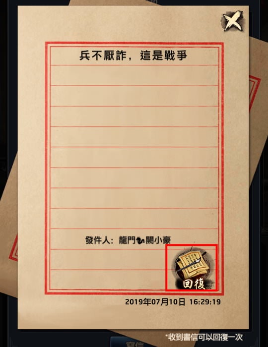 收到信會像這個樣子,每封信可以「回覆」一次(不用花飛鴿)。