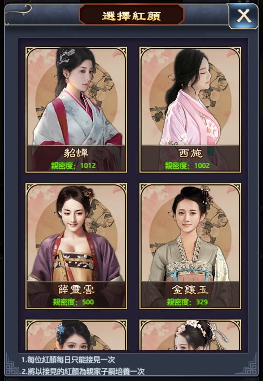 | 2, 派誰接見,就是以她的「親密度」與「位份」來添加子嗣屬性。 |