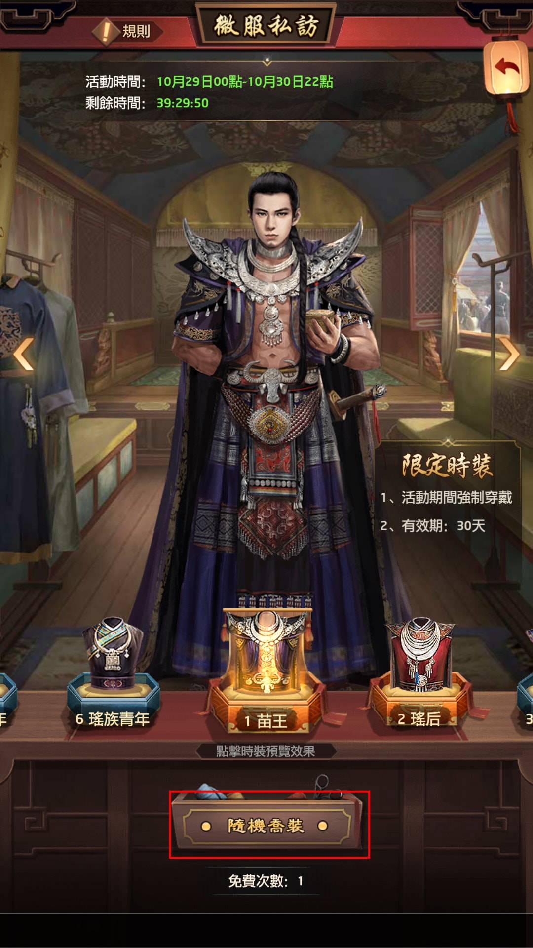 | 隨機喬裝 | 隨機抽取一套時裝,若免費次數用光,就得儲值購買。 |
