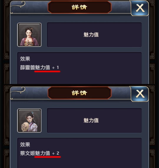 | 紅顏 | 魅力值+1、魅力值+2 |