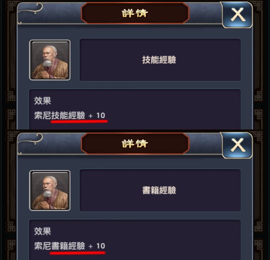 | 門客 | 書籍經驗10、技能經驗10 |