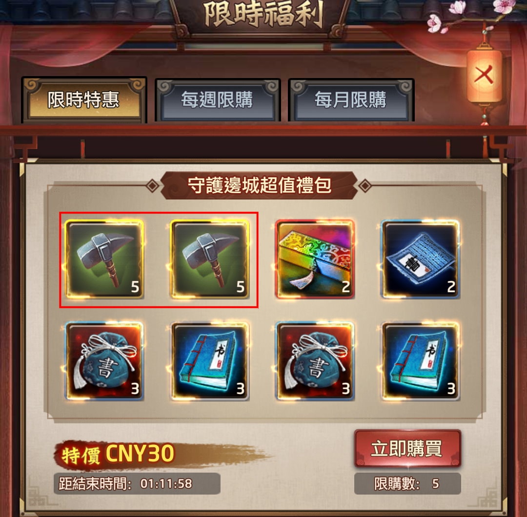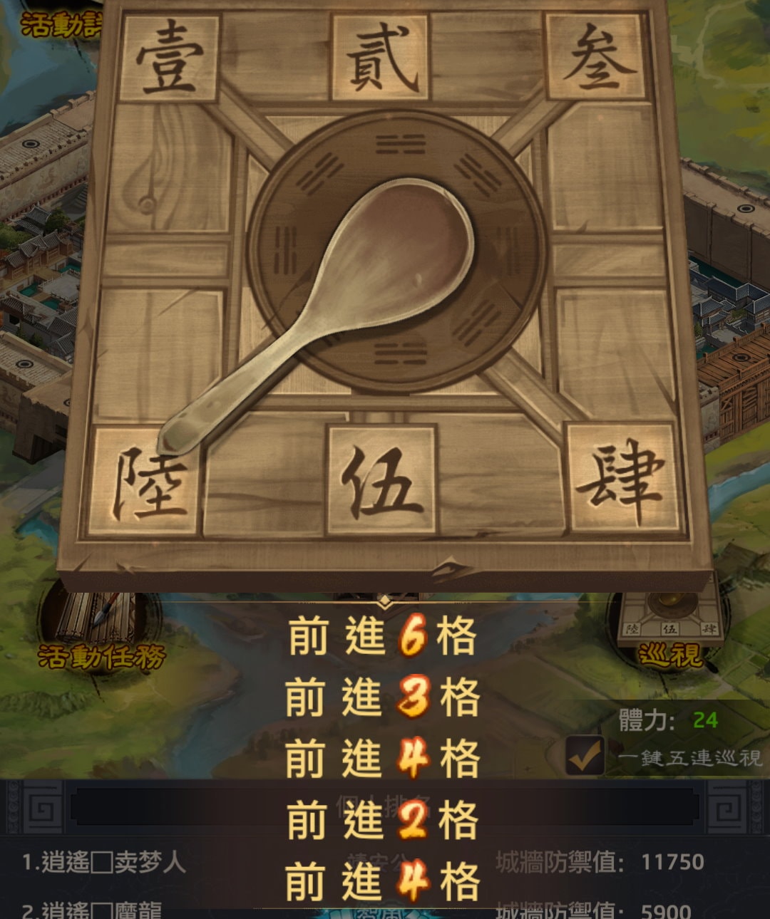 玩大富翁就是要拼命升級某格地的房子,守護邊城也是,只是守護邊城策略性沒那麼高,目前還沒有道具可以使用,就只能靠運氣,或是靠儲值提高體力來取勝。