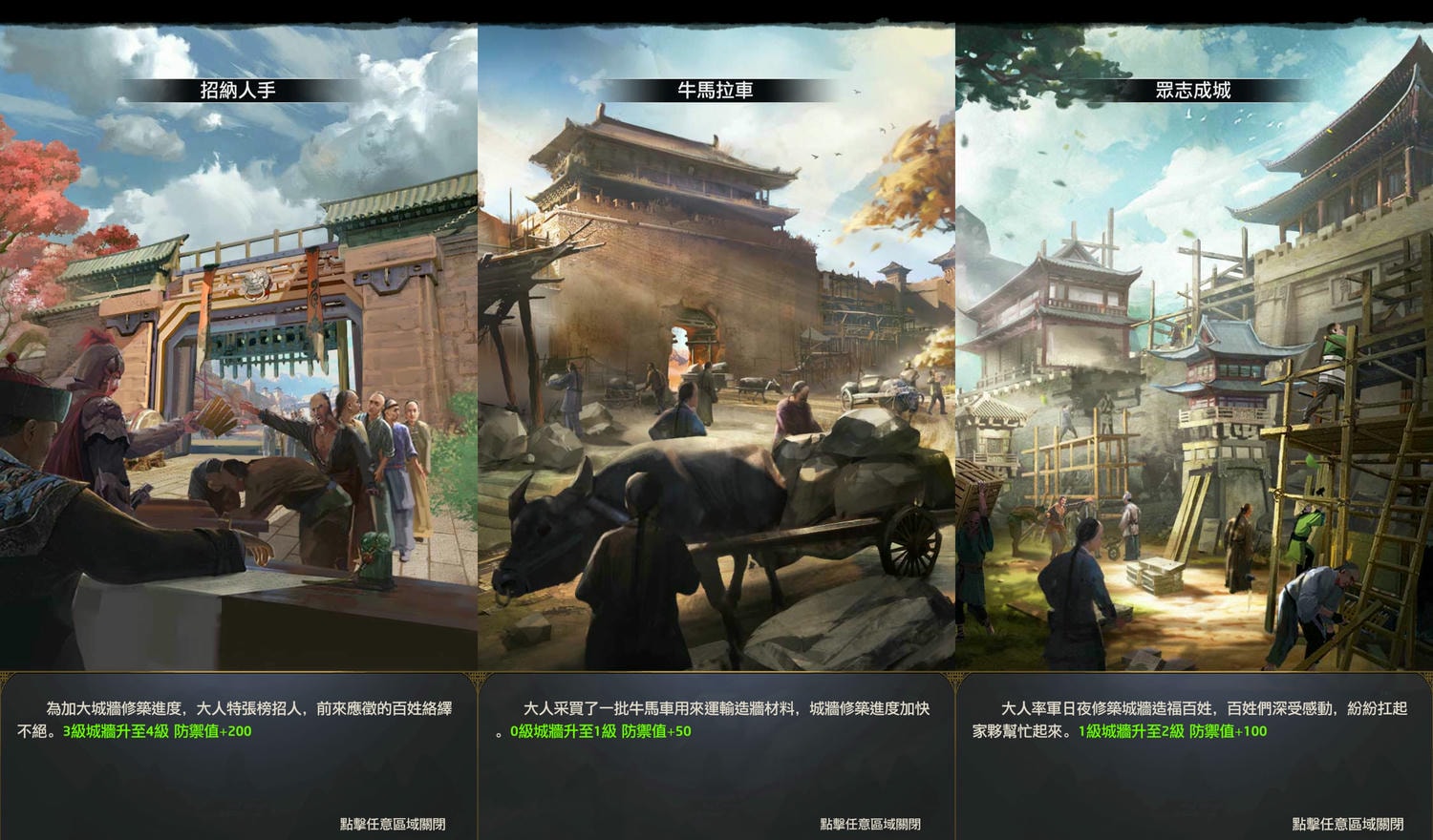 - 巡視後落腳的城牆等級提升1級並增加對應防禦值。