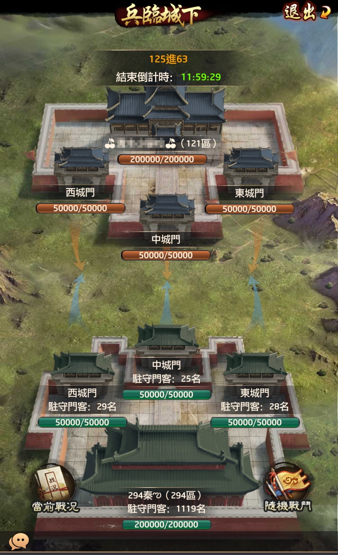 像活動一開始就會隨機出戰西城門、中城門、東城門,不會隨機到主城。(不像舌戰群儒可以隨機到對方盟主)但若能擊破三個城門,隨機也只剩主城可以出戰。