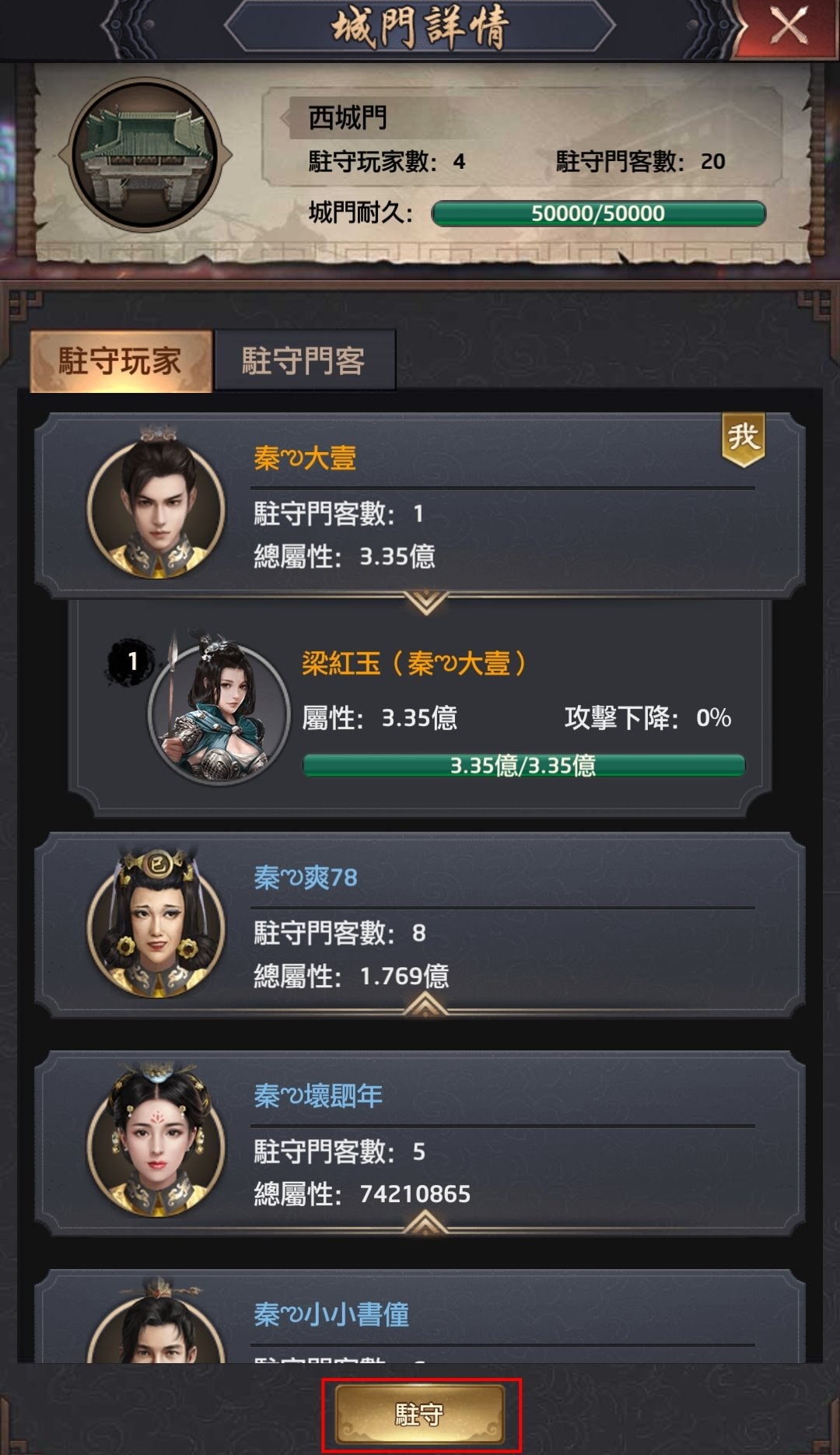 點進任何一個城門或主城,都可以看到盟友門客派遣的情形,點擊下方「駐守」則可以派遣門客防守。