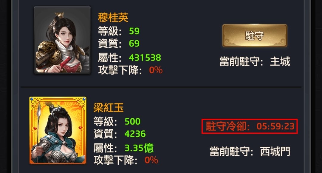 - 每個門客的派遣CD為6小時,CD未結束無法派遣,每個門客僅可駐守一處。