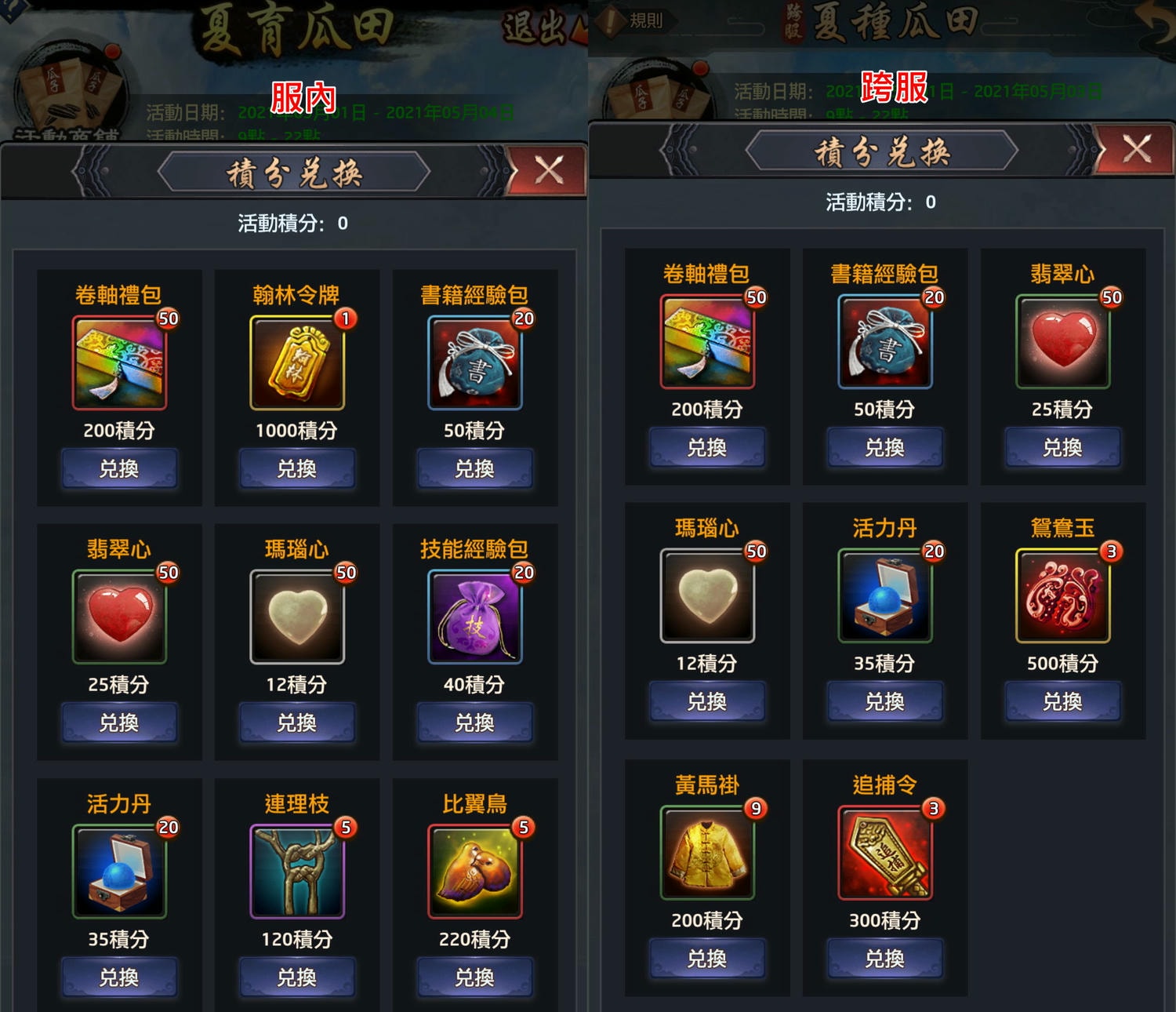 但從「活動道具」上名稱不同這點看來,同個活動服內跟跨服是分開的!可以當成是兩個不同的福利活動,不會出現在服內用便宜價格購買活動道具,拿到跨服活動拼分用的現象,