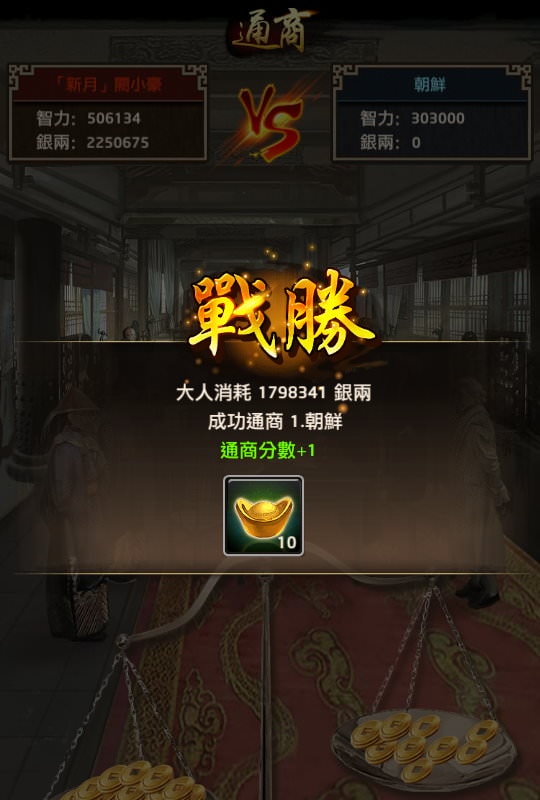 總智力屬性也跟「通商」有關,智力屬性越高,消耗的銀兩就越少。