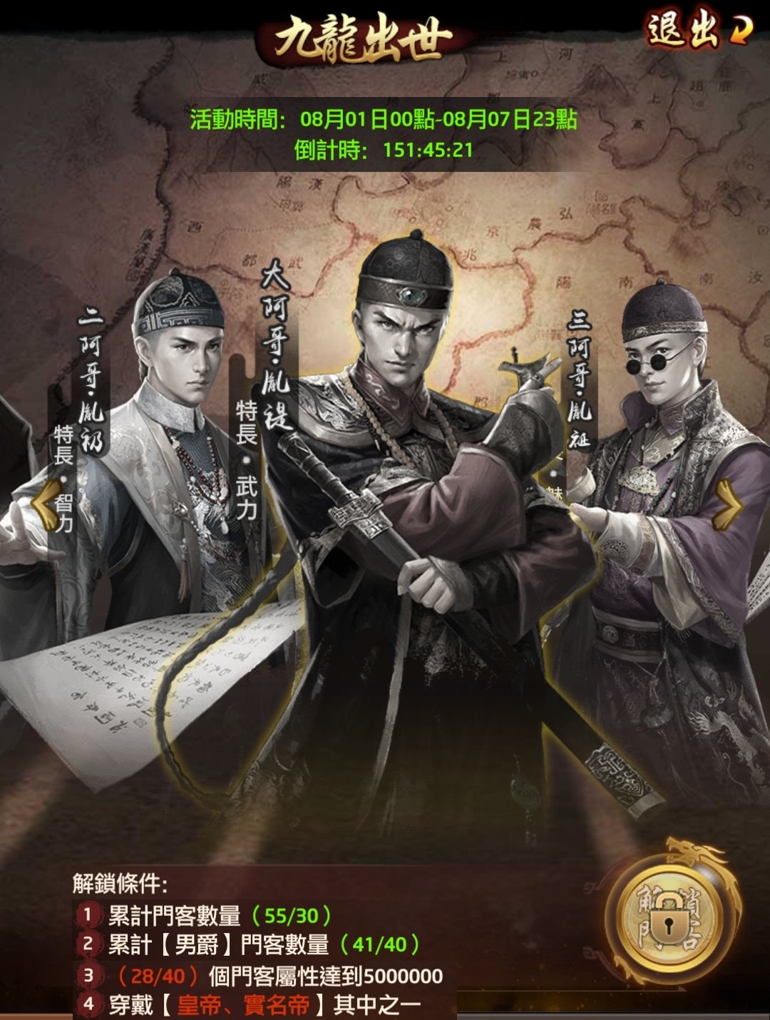 | 3 | 40個門客屬性達到2,000萬 | 全數屬性+45% |