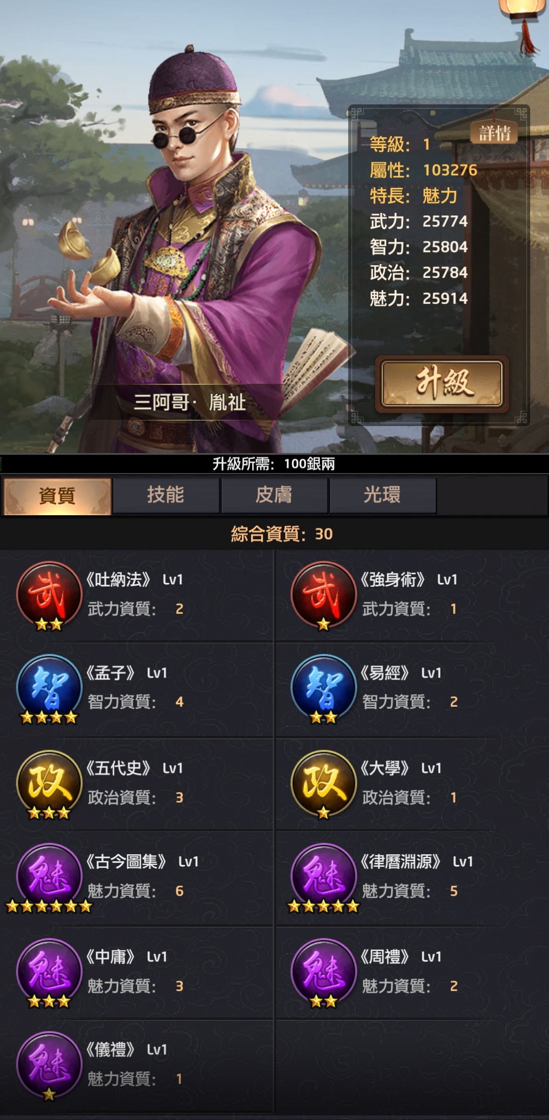 | 3 | 累計門客數量:42 | 全數屬性+50% |