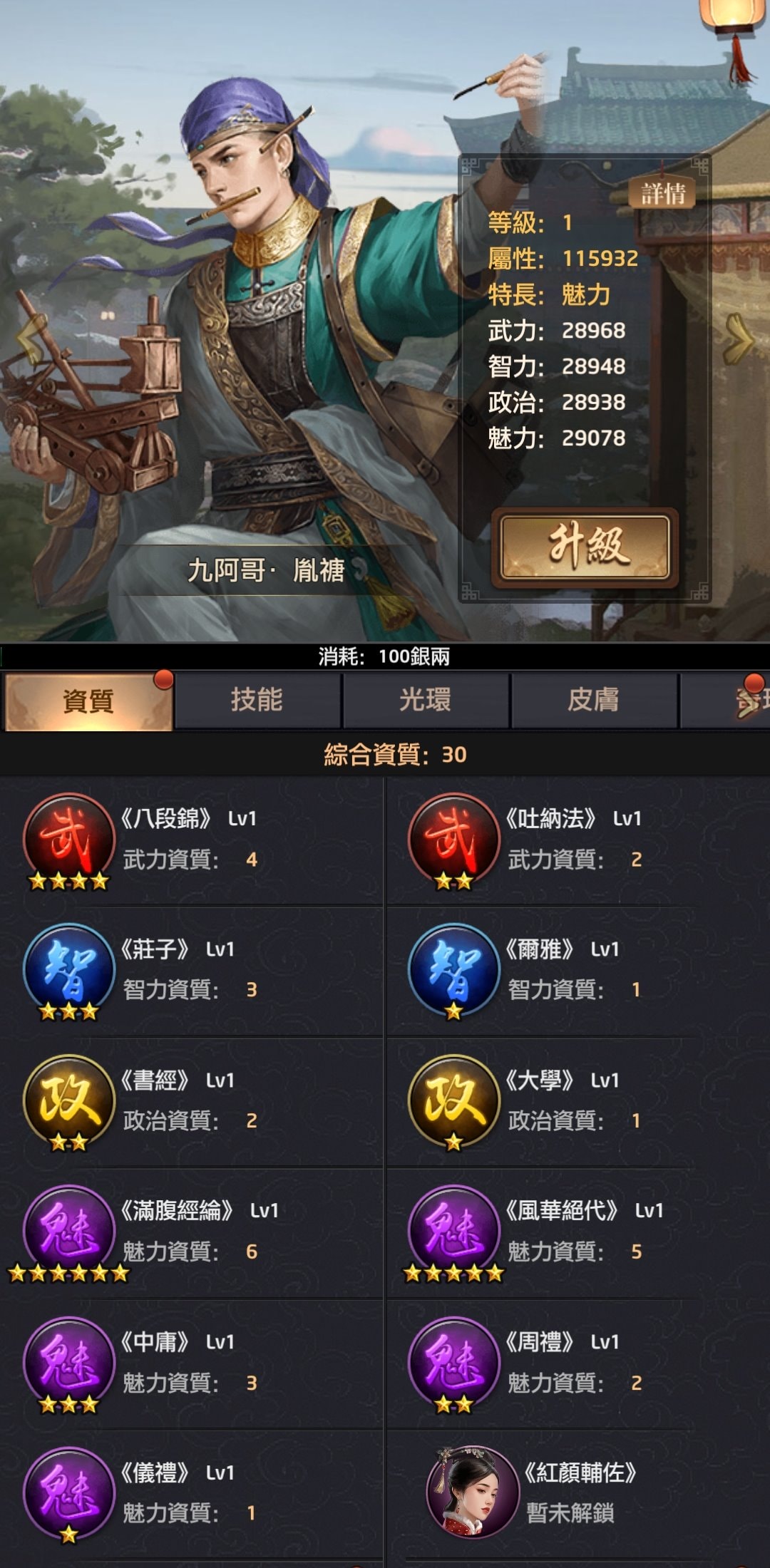 | 10 | 累計門客數量:82 | 全數屬性+160% |