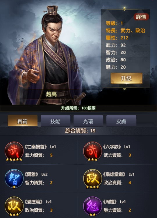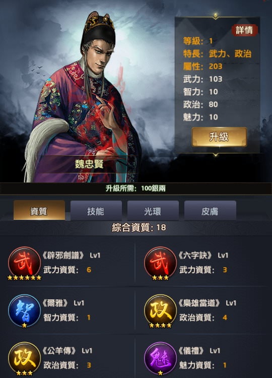 | 武力書籍 | 魏忠賢:6星+3星(唯一6星武) 秦檜 :5星+3星 趙高 :5星+3星 李蓮英:5星+3星 |