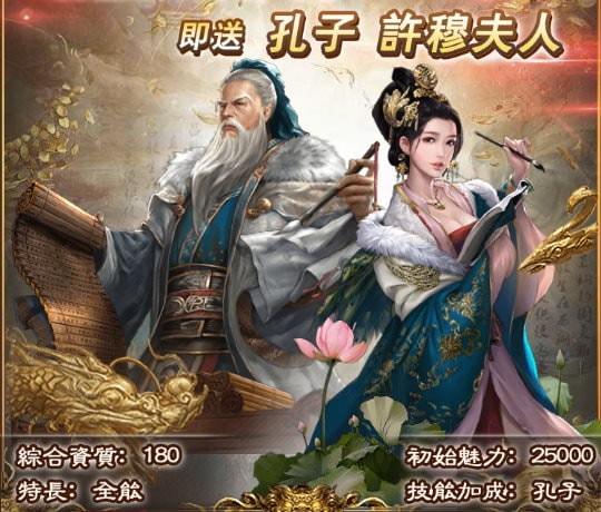 目前(寫文當下)最高的VIP等級是16,贈送孔子與許穆夫人。