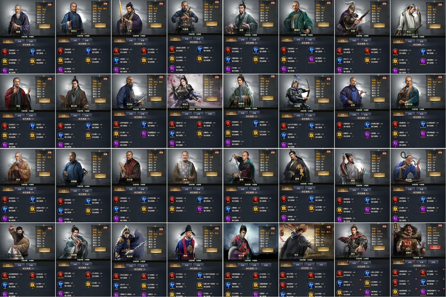 | 書籍/資質:凌煙閣 | 紅顏輔佐 | 藏經閣 | 整軍經武 | 雞智 | 濟世安邦 | 織造能手 |