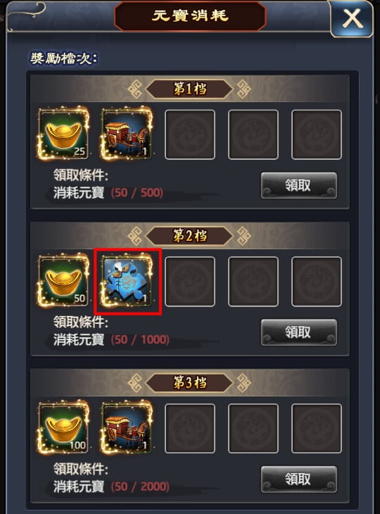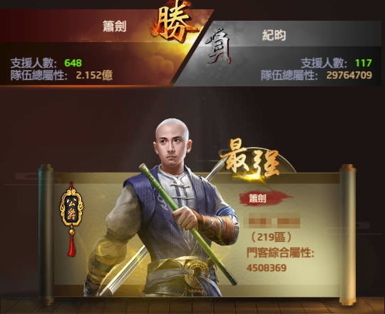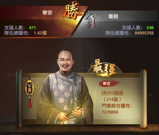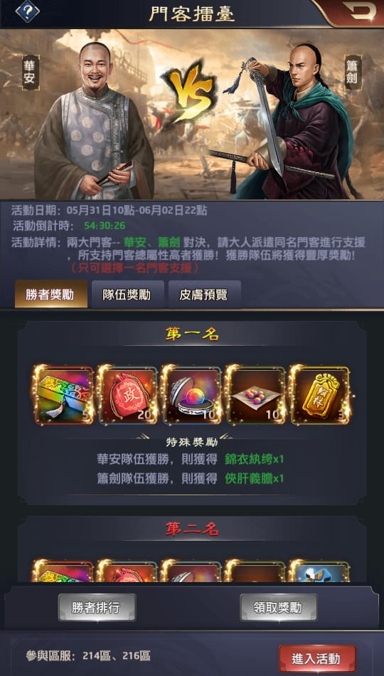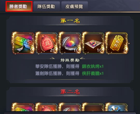 | 獲勝隊伍:除「隊伍獎勵」外,若門客在前500名,還有「勝者獎勵」,共可領2個獎勵。 |