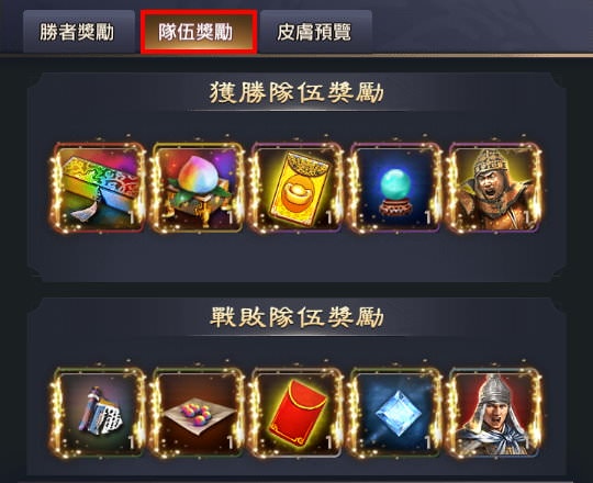 | 戰敗隊伍:只有戰敗的「隊伍獎勵」,只能領1個獎勵。 |
