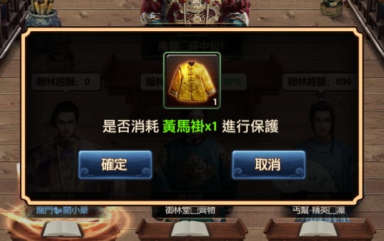 附註:「跨服翰林院」保護1個小時則是需要3件黃馬掛。