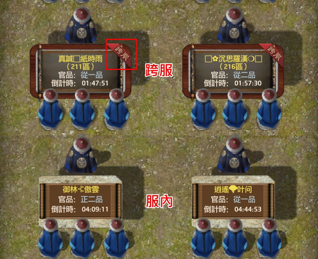 若是參與他人開桌,當然是坐跨服桌比較好,收益是3倍,甚至降低一個官品(譬如在服內都坐正二品桌,跑去搶跨服從二品桌,收益也還有1.5倍),但競爭者也多了其他9服的玩家。