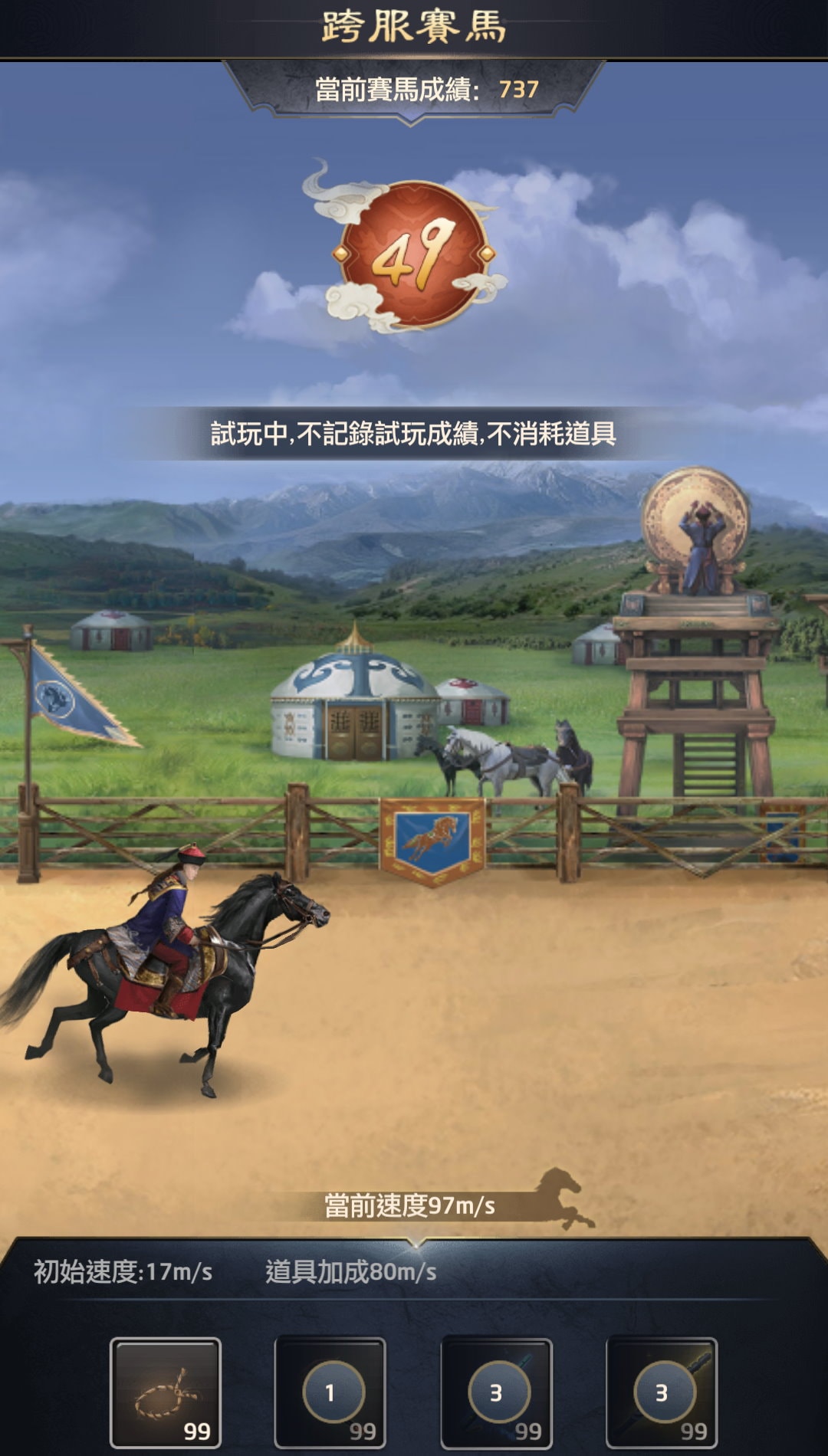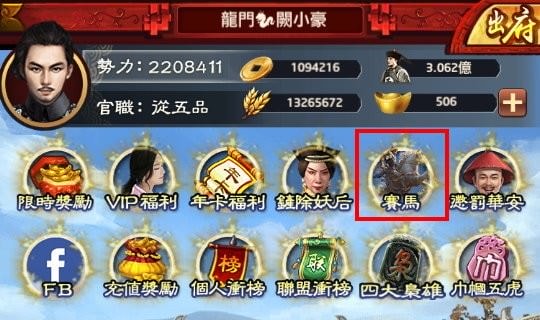 手機遊戲《叫我官老爺》中的「賽馬」比賽,是大量拿到翰林令牌、招募令碎片等物品的好機會,CP值非常高。