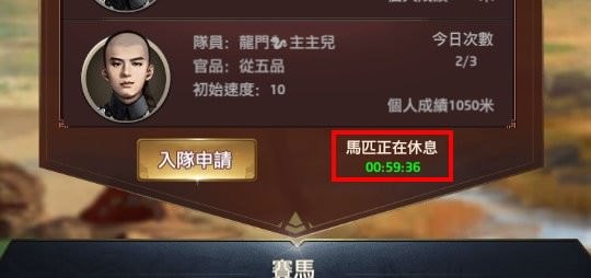 賽馬是由隊長組隊,再找最多4名成員來加入的競賽。隊長得花500元寶創建隊伍,但隊長的報酬也會比較好。