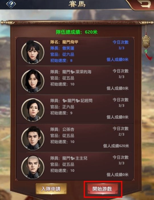 組隊界面這邊能看到目前成績,一天要跑3場。