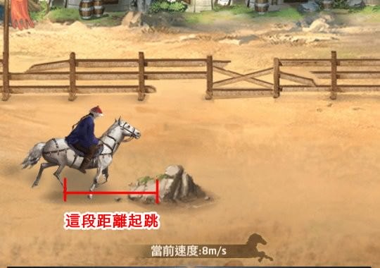| 3, 視線主要是放在馬鞭的CD時間,餘光去注意馬前方就好,看到石頭就準備跳。 |