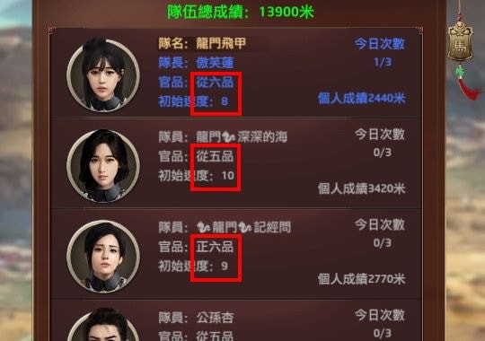 賽馬會有初始速度,這是指馬在不使用馬鞭的狀況下能跑多快,官品越高越快。