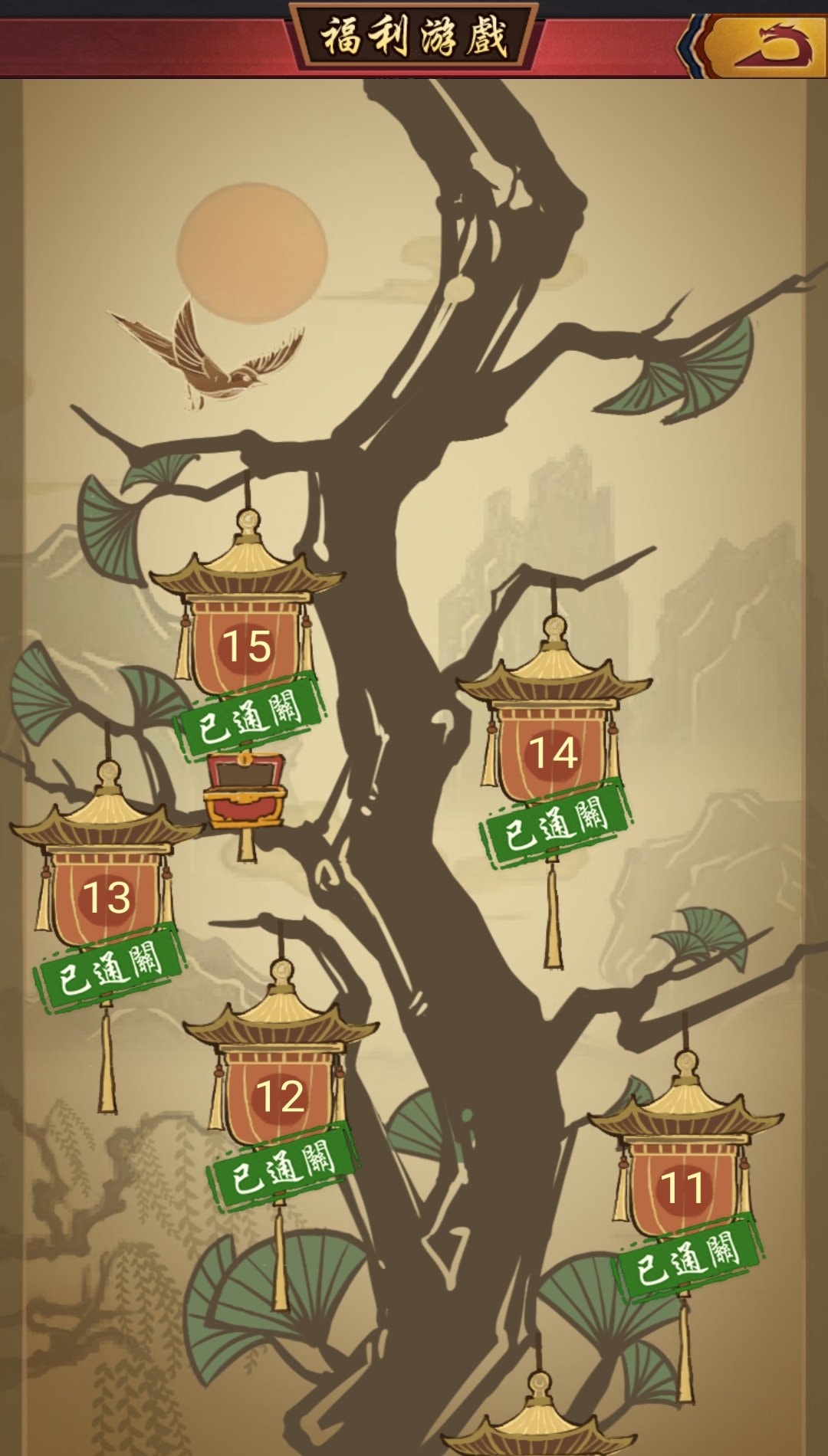 第1關是教學關卡,成功失敗都會過關。若是在成語救紅顏推出前就已創號,則第1關會自動呈現已通關。