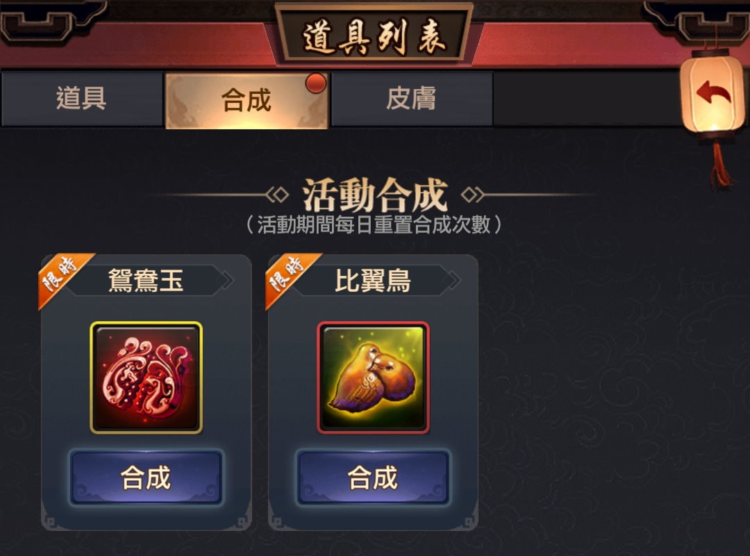 | 勢力衝榜 | 比翼鳥 | 10 | 連理枝*1、元寶*240 |
