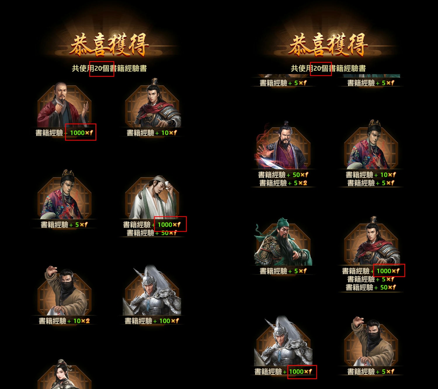 書籍經驗書、技能經驗書(最多能開到x1000),個人則是覺得數量沒有達20以上,不太容易開出x1000,所以都會一次開20個。