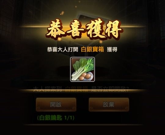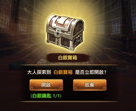 探索時有機會遇到寶箱,有3種:青銅寶箱、白銀寶箱、黃金寶箱