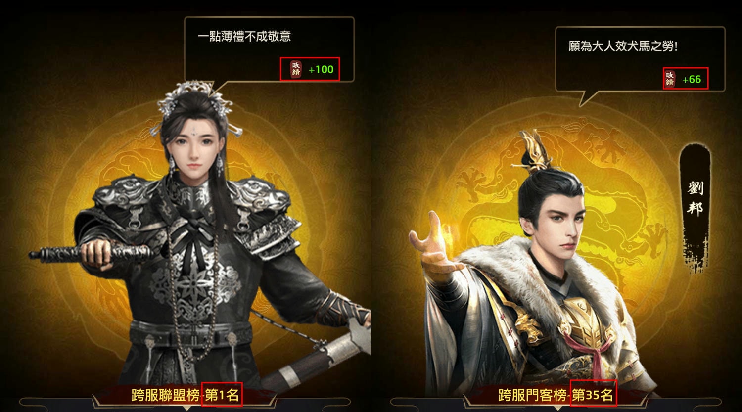 跨服榜單共分為3種:跨服勢力、跨服聯盟、跨服門客