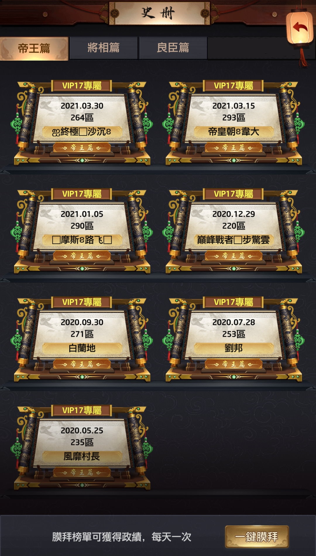 | VIP等級達17級 | 帝王篇 | VIP17專屬 |