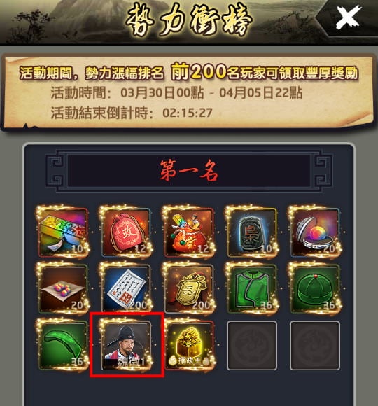 2, 若衝榜在100內,但不想拿魏徵、上官婉兒,就得同時捨棄其他獎勵(招募令、卷軸禮包、綠衣),解決辦法是把名次保持在101名~200名之間,能拿獎勵又不會拿到門客跟紅顏。