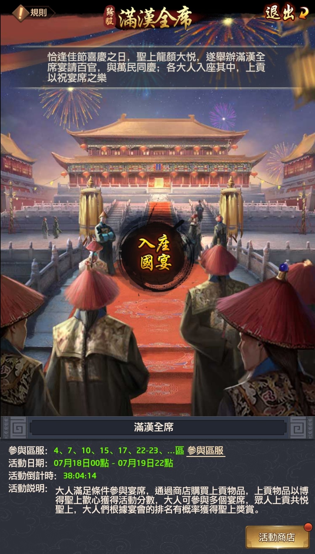 - 未滿足赴宴條件的大人,在宴會進行期間滿足赴宴條件即可參與上貢。