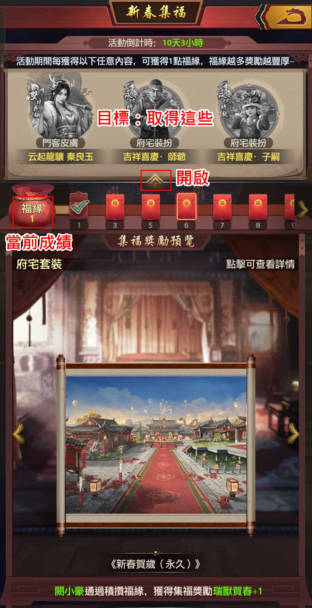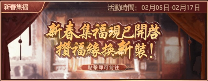 新春集福的獎勵,主要是湊齊整組府邸裝扮,我覺得對玩家來說吸引力不大。
