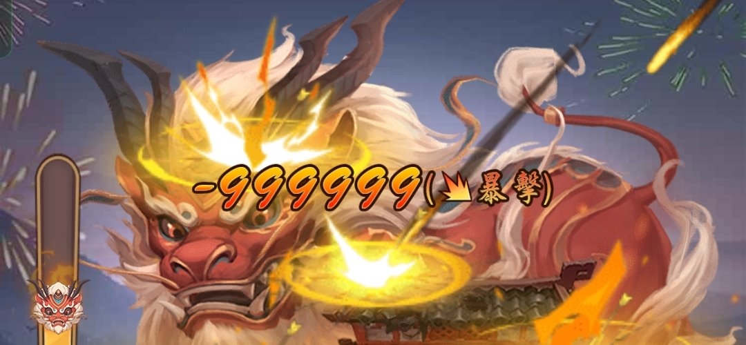 - 年獸非抵禦狀態時,可先使用「極品.年畫」,該次攻擊造成333,333傷害,緊接著再使用「極品.火箭」,該次攻擊會造成999,999傷害。