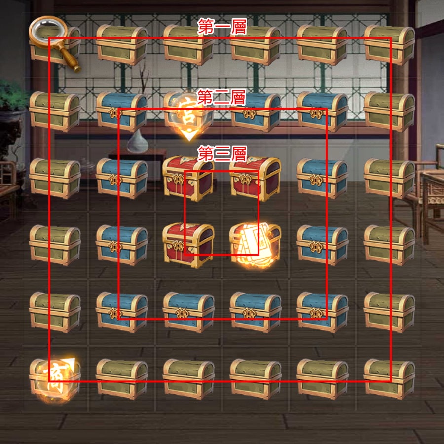 這設計類似之前的「幸運大抽獎」,寶箱依照顏色來分共有3層,