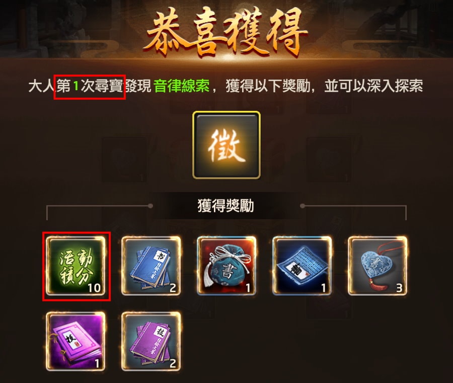 尋寶時會顯示你第幾次才找到音律線索,找到後就直接拿下該層所有獎勵。不過這邊有個要注意的是: