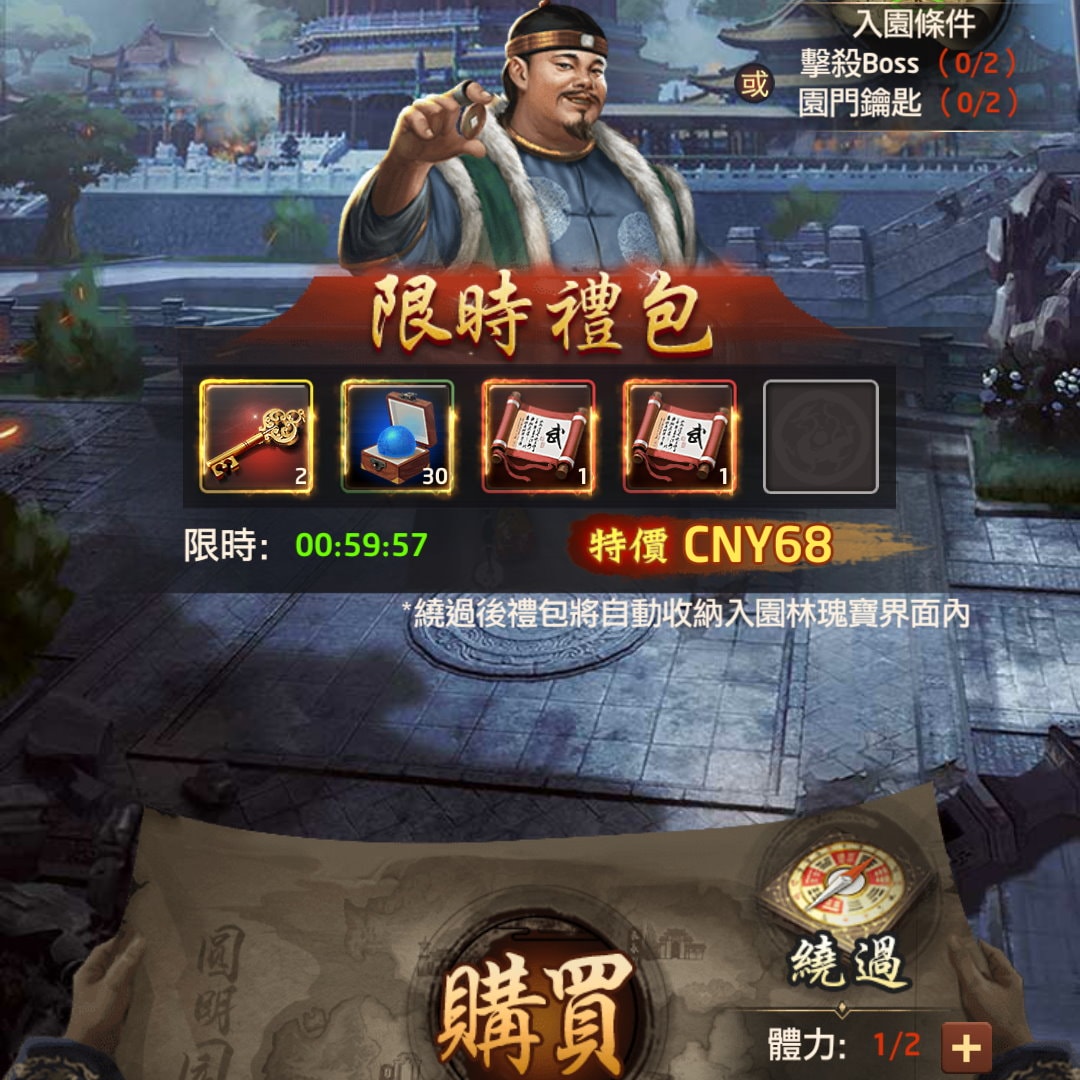 商人,限時禮包,若需要就點「購買」,若不需要就點「繞過」。