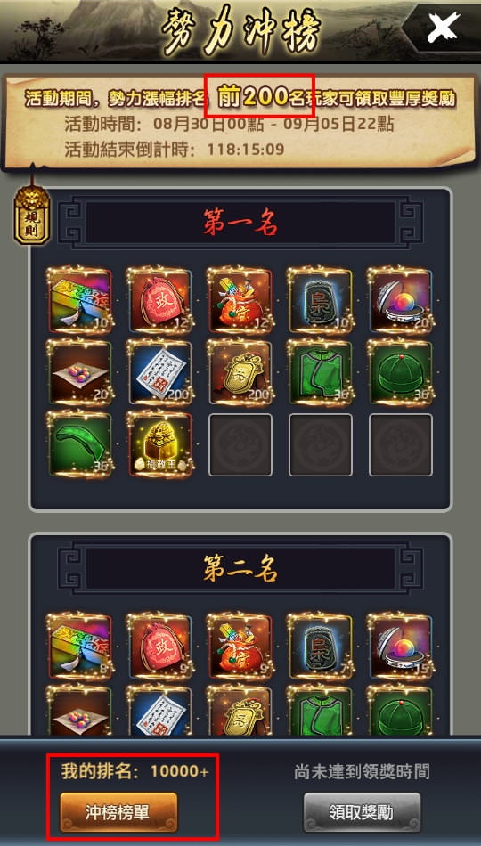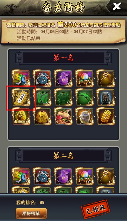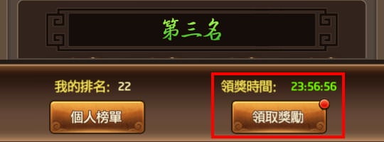 衝榜結束後,若有在獎勵名次內,24小時內都可以點「領取獎勵」來領獎。