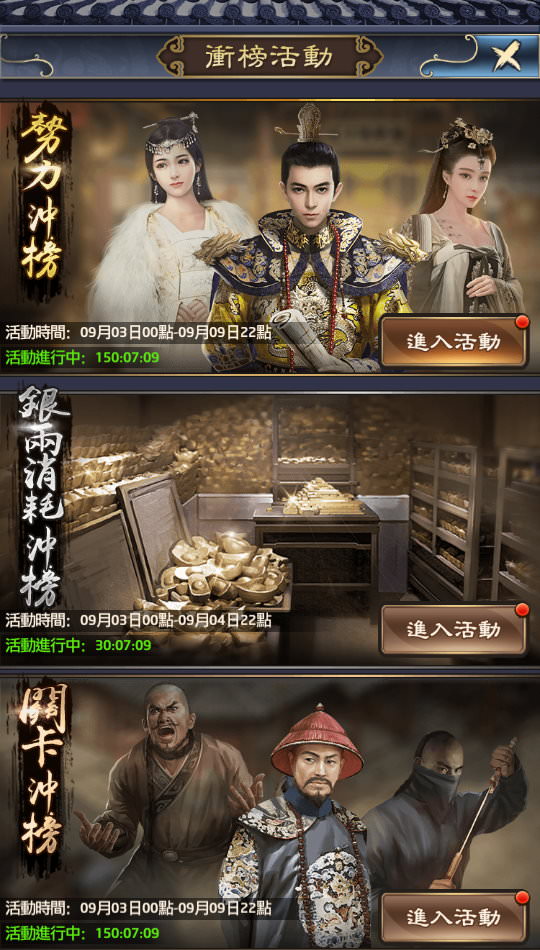 附註:剛開服例外,勢力、關卡衝榜會有7天。