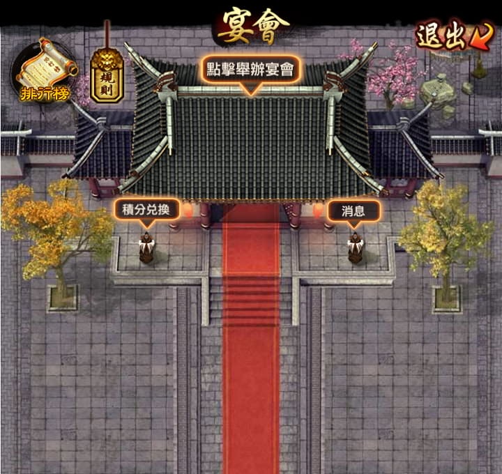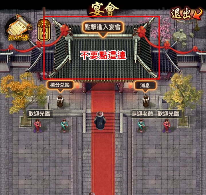 附註:此時開宴的玩家依然可以正常的點「酒樓」去兌換積分、去吃別人開的宴,這點是沒有問題的,不要去點到府宅就好。