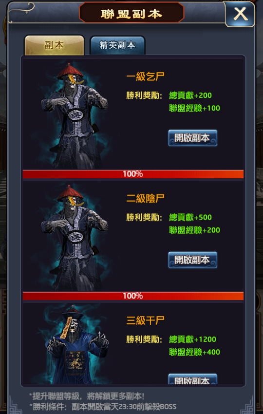 擊殺聯盟副本的殭屍時會取得聯盟經驗。