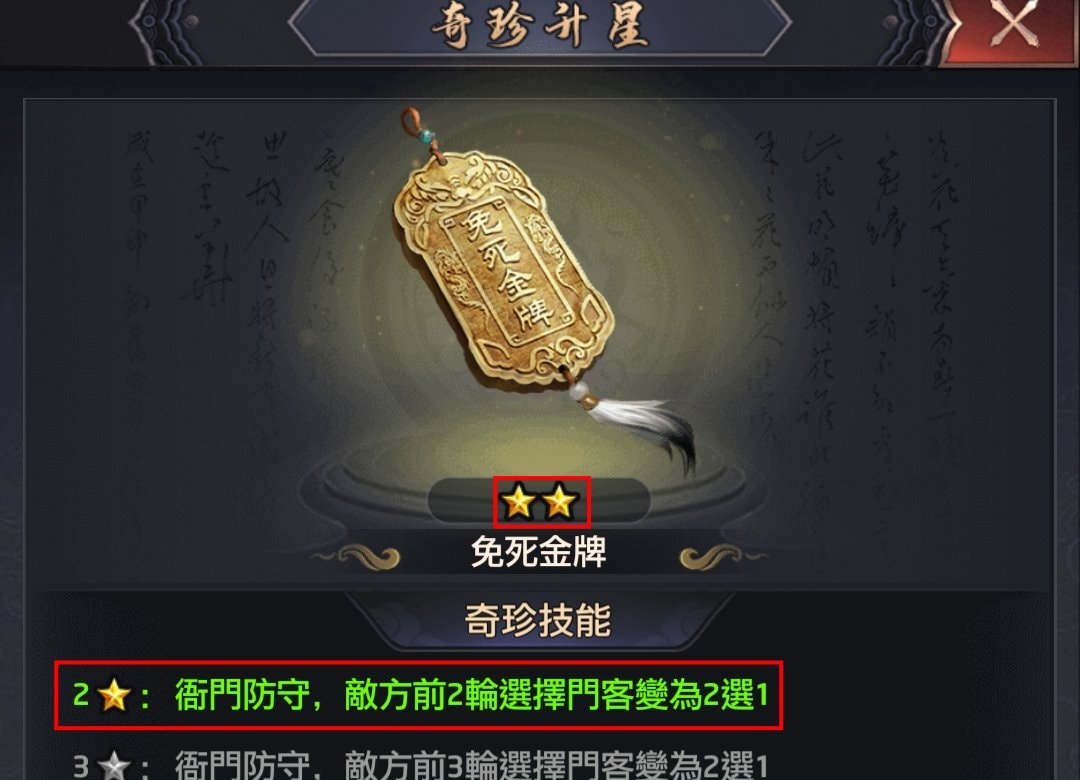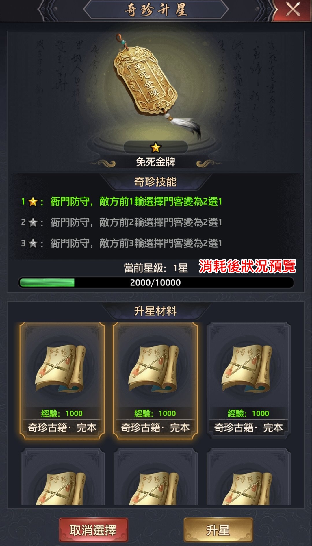 珍寶升星後,功能也會加強。目前要把珍寶從1星升到2星需要珍寶古籍.完本*10(可由珍寶古籍.殘片*100合成)
