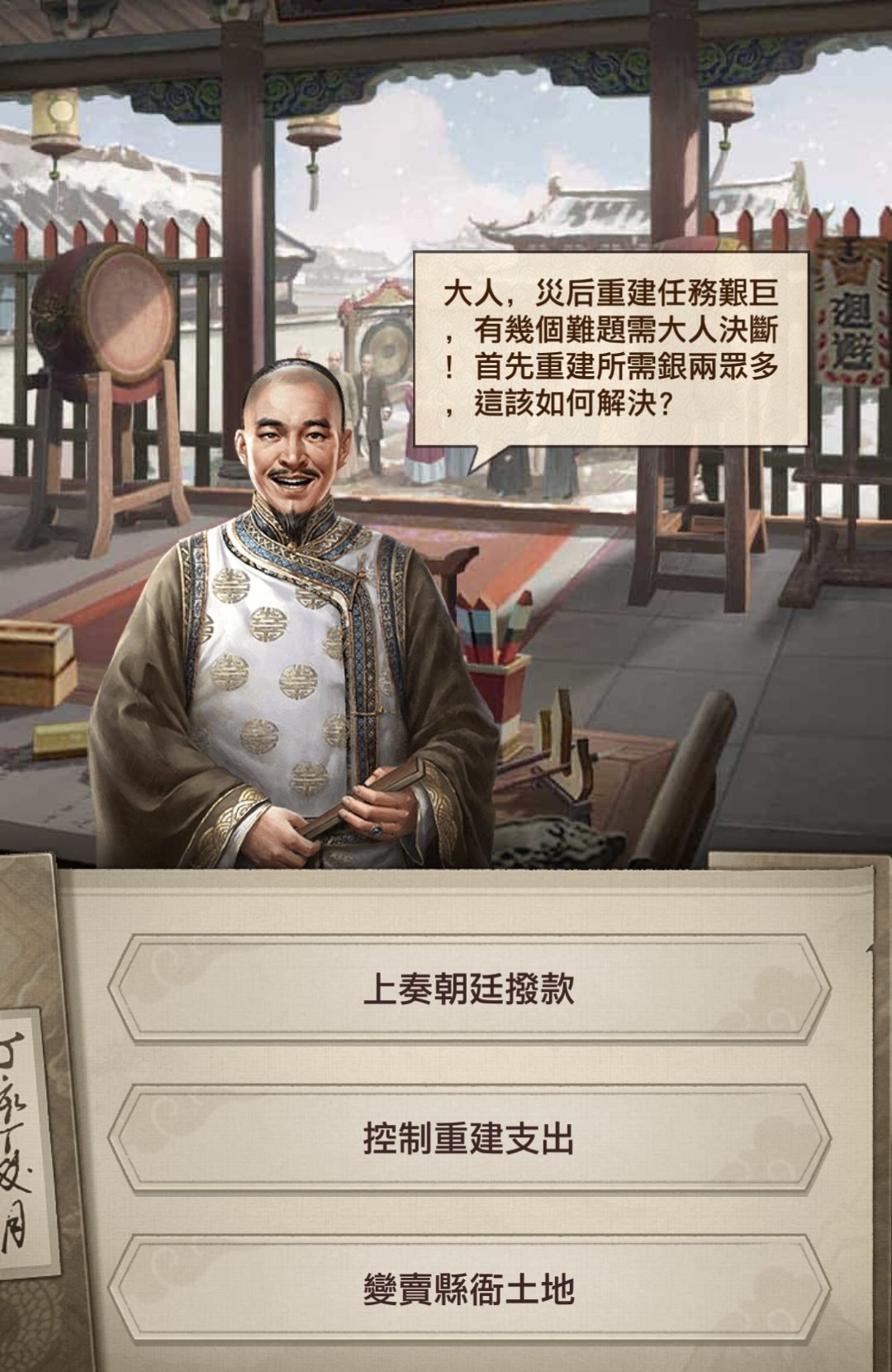 ①修復縣衙:通過拖動材料修復場景,使用正確的修復順序可獲得最高民意。