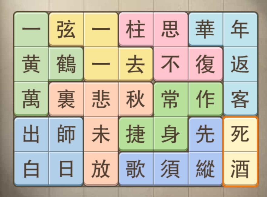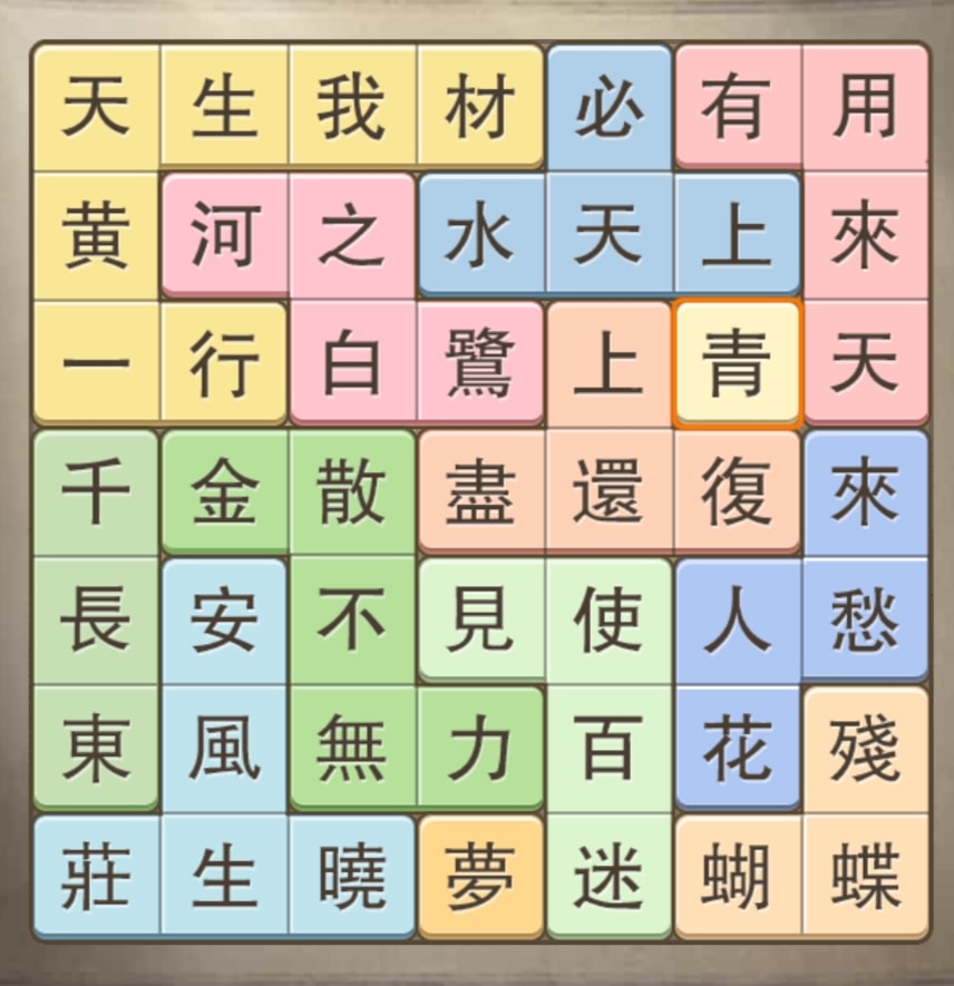 - 使其每一橫列都成詩詞中的句子。