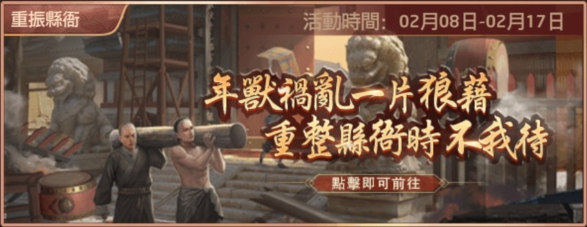 《叫我官老爺》「重振縣衙」是龍年春節推出的一系列小活動之一,為個人身分參與的跨服競賽。